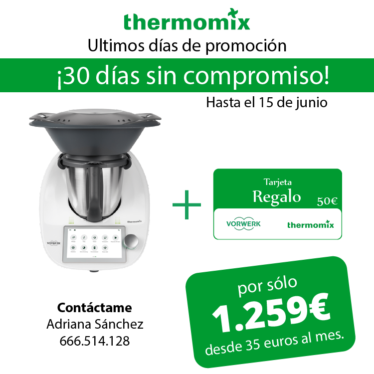 Aprovecha los 30 días sin compromiso que te ofrece Thermomix hasta el 15 de Junio junto con la tarjeta regalo de 50€ que puedes canjear por algún accesorio de tu preferencia en nuestra tienda online. Elige entre el Cubrecuchillas, la Bolsa de transporte, los moldes para el Varoma o los vasitos para los yogures para la función de Fermetación! Disponibles ya en nuestra página oficial.
