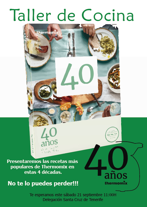Ven a cocinar con nostros en nuestro 40 Aniversario en los Talleres de Cocina que impartiremos el viernes 20 a las 17:30 y sábado 21 a las 11:00 en la Delegación de Santa Cruz de Tenerife. Cocinaremos 4 de las recetas más populares de nuestra exitosa trayectoria. No pierdas la oportunidad de celebrar con nostros este maravilloso evento!