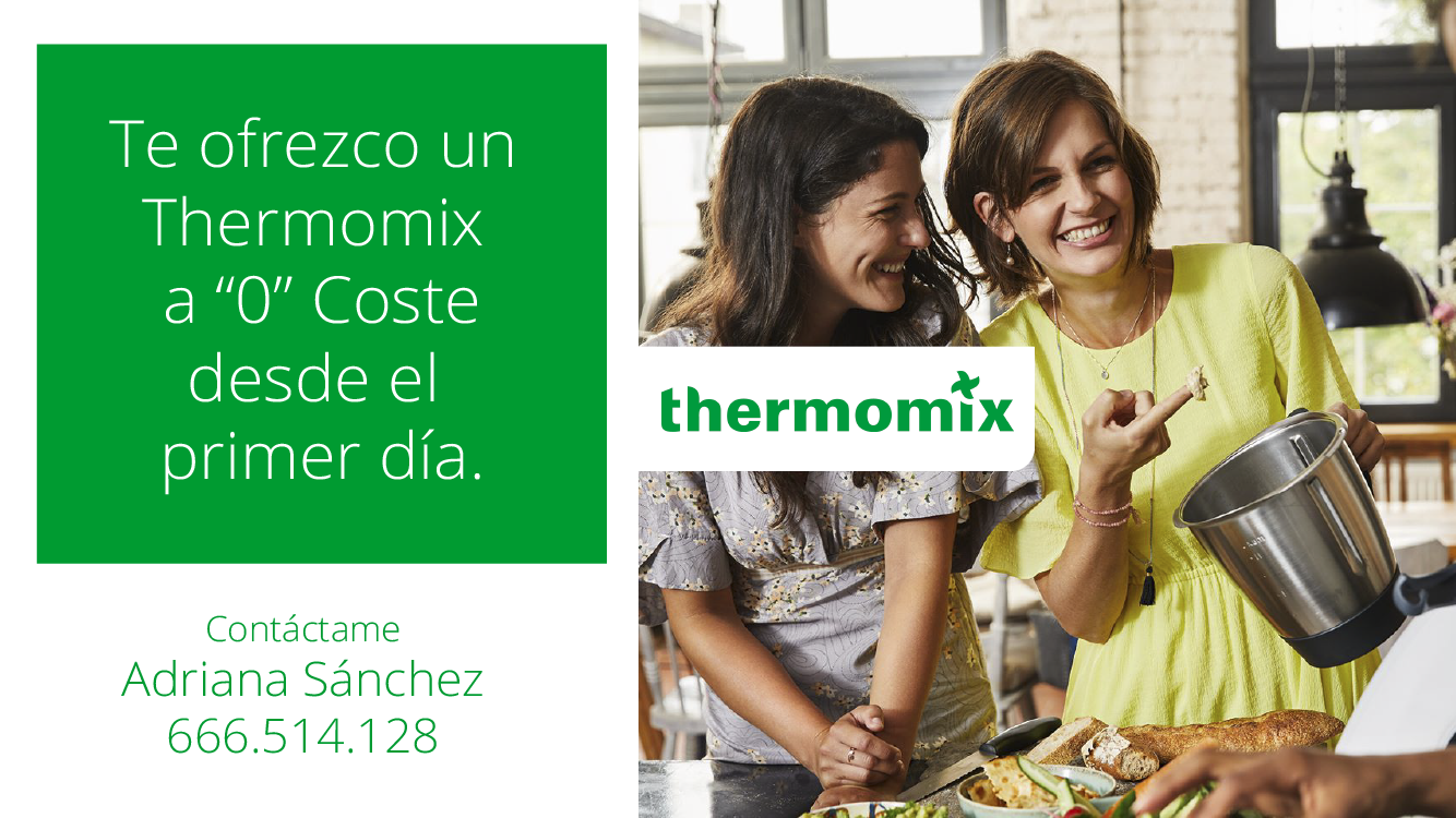 Te animo a contactarme para explicarte cómo puedes hacerte con un Thermomix a 0 coste en tu casa desde el primer día. Te ayudaré en todo momento a conseguir tu objetivo y aprenderás a cocinar y disfrutar de las mejores recetas de nuestra plataforma cookidoo.es en nuestro último modelo: el TM6