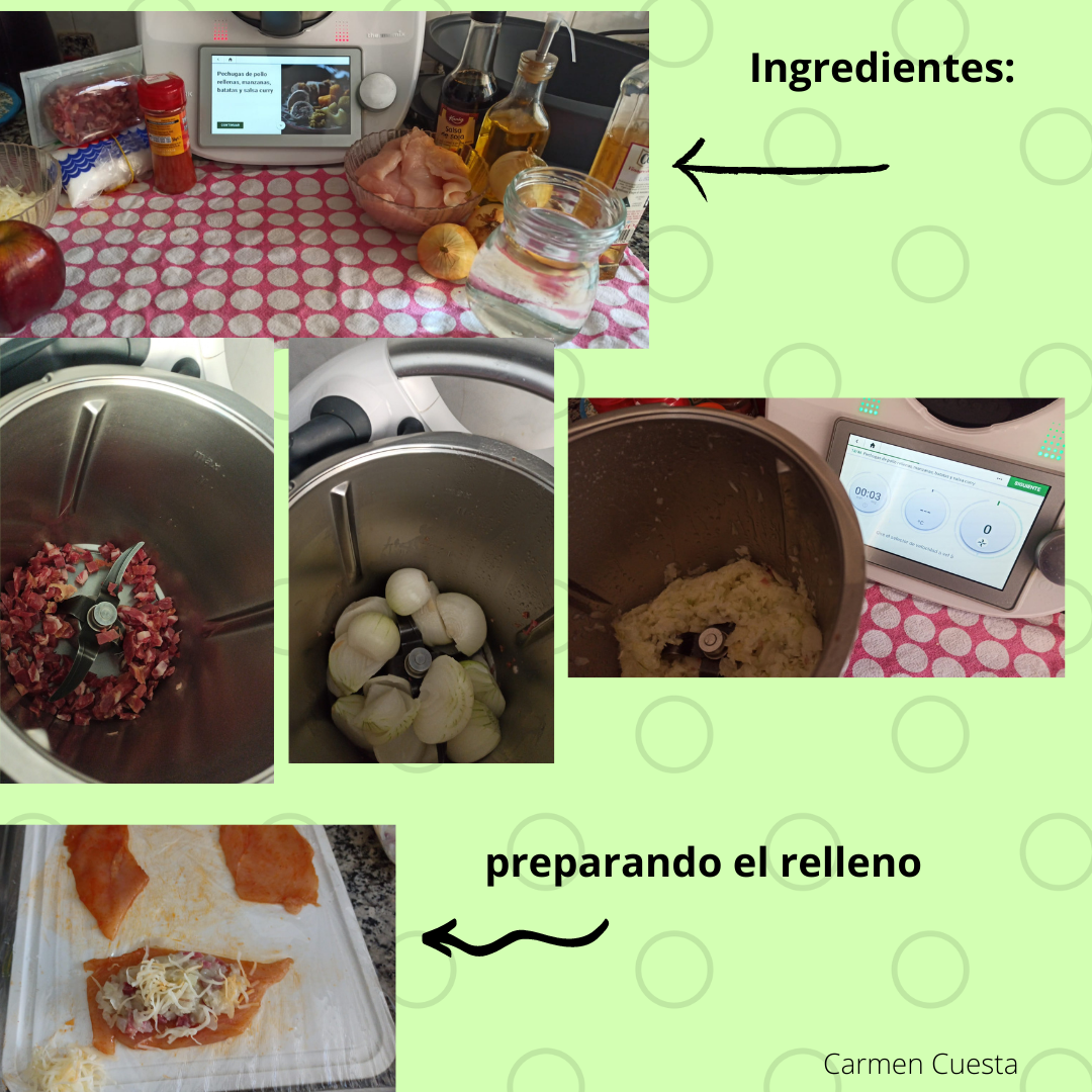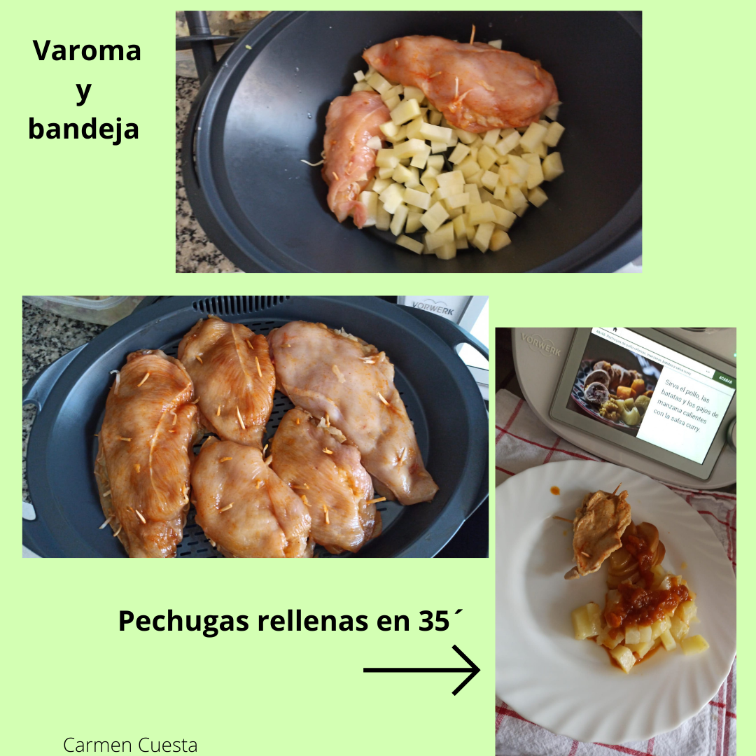 PECHUGAS DE POLLO RELLENAS, MANZANAS, PAPAS Y SALSA CURRY