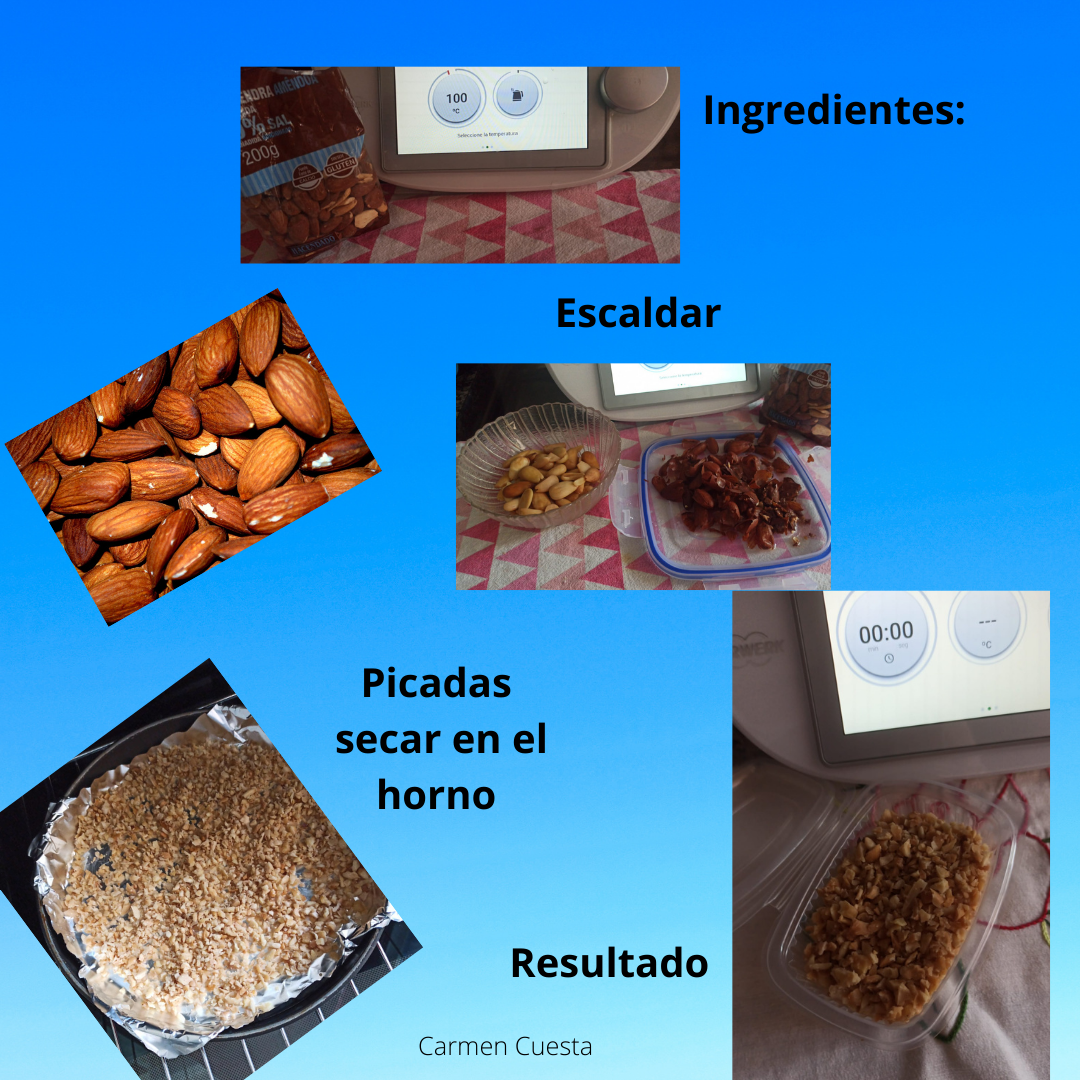 3. Listas para trocear Tiempo 4 seg/vel 5 las almendras, están listas.