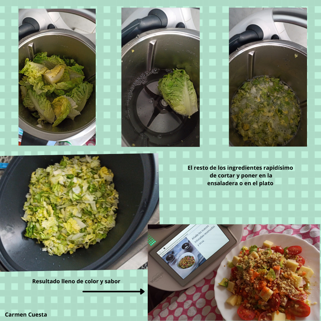 4. Ponga en el vaso las zanahorias y trocee 5 seg/vel 5. Vierta en el bol sobre la lechuga.