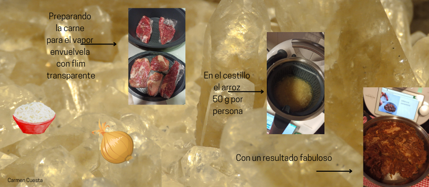 TERNERA AL VAPOR CON CEBOLLA CARAMELIZADA Y ARROZ BLANCO