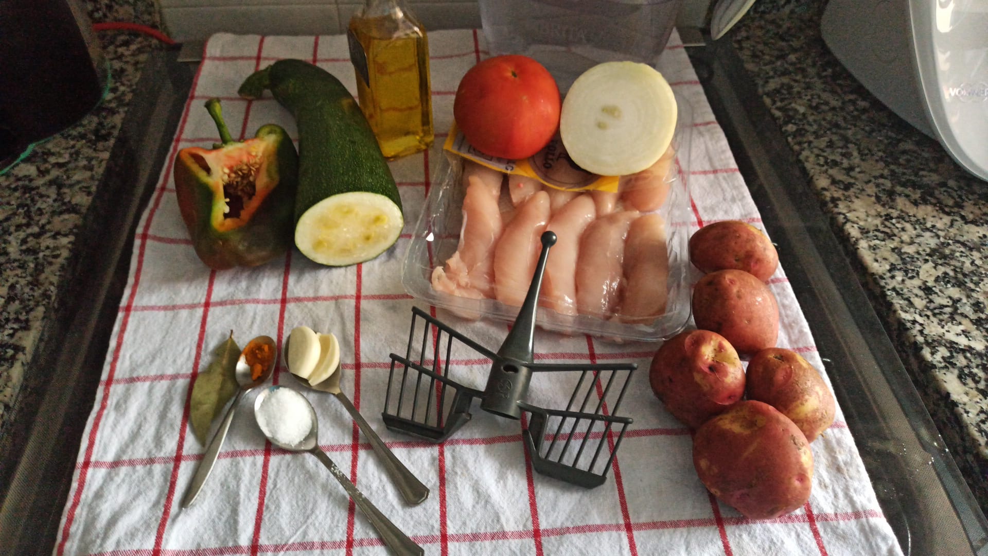 No tenía pimiento ni rojo ni verde y le añadí 150 de calabacín zucchini.