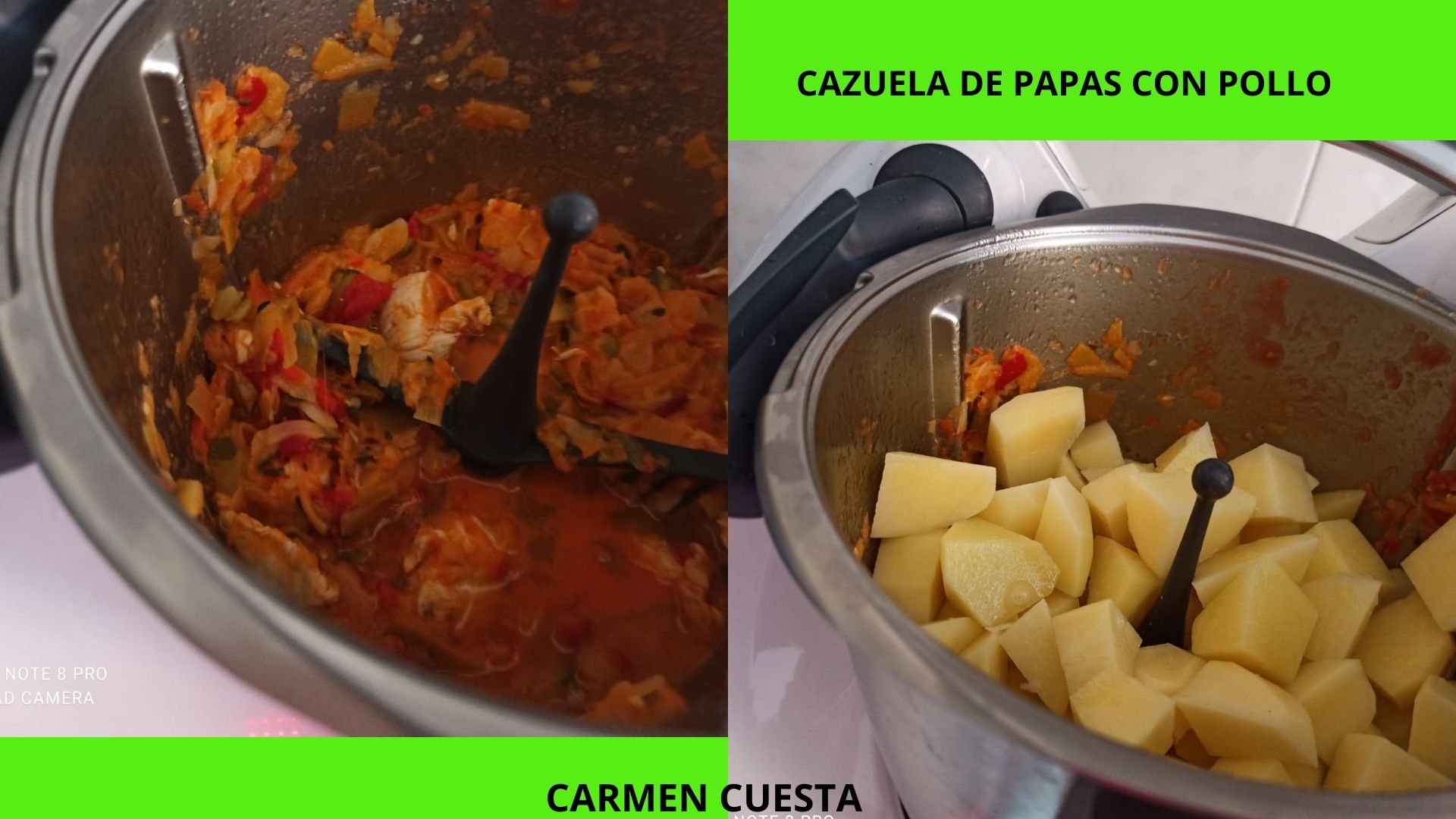 - Agregue las patatas, el azafrán, el laurel, la sal y el agua. Programe 22 min/100°C/Giro inverso/vel 1. Vierta en 2 cazuelas individuales de barro, espolvoree con el perejil picado y sirva.