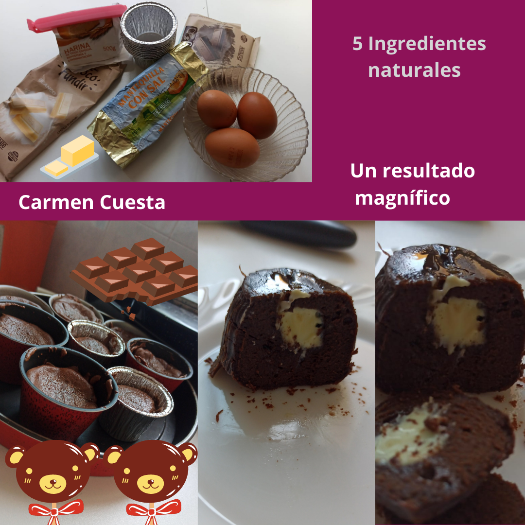 Este postre se come caliente, pues en el interior llevas un corazón blanco.