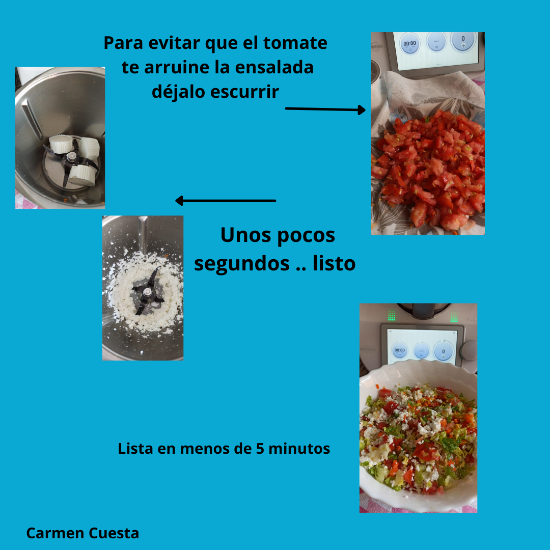 6. Cuando tengas todo picado, haz una vinagreta a tu gusto: sal, pimienta, vinagre y aceite, mézclalo con un agitador electrónico.