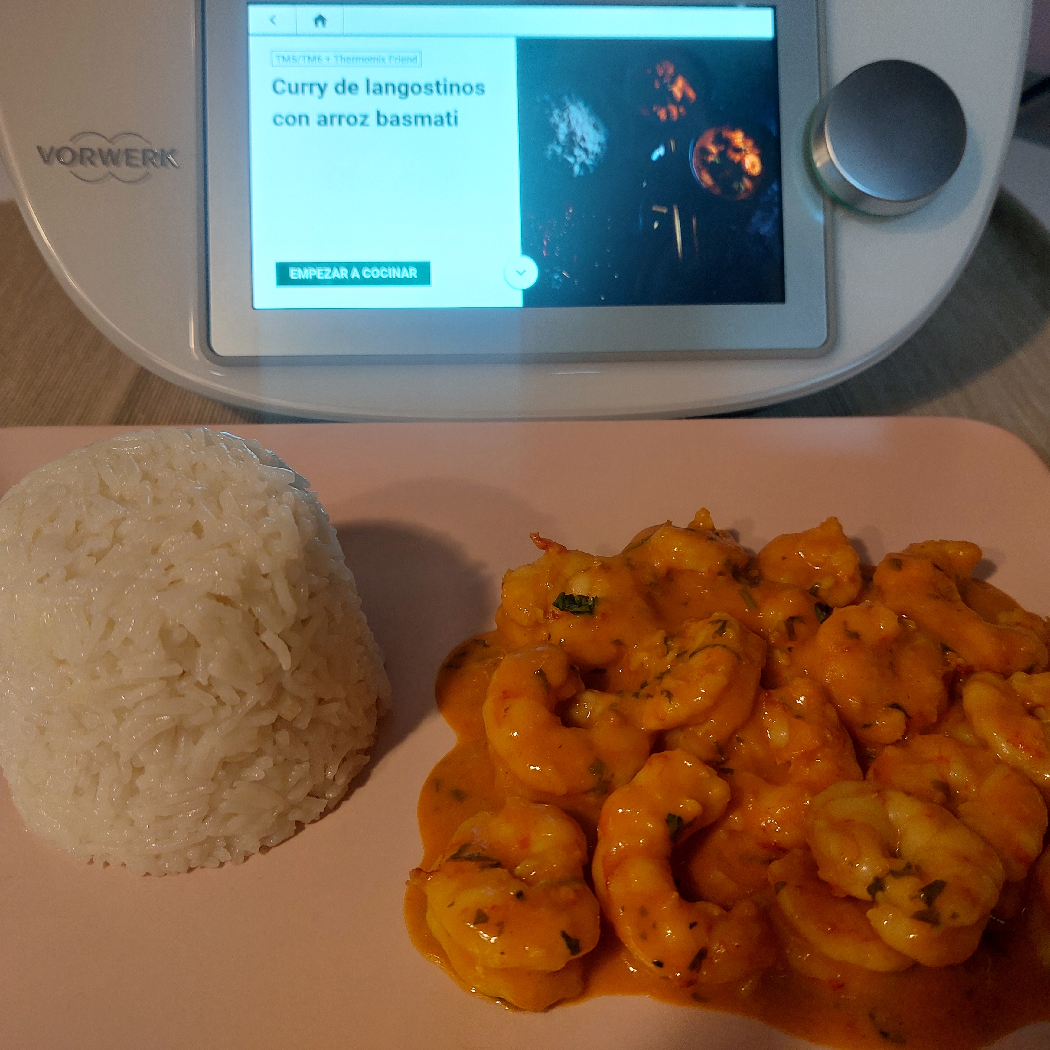 .Para finalizar ponemos lis langostinos 4min/90/giro inverso/vel cuchara.Una vez terminado servimos con el arroz y listo para comer.
