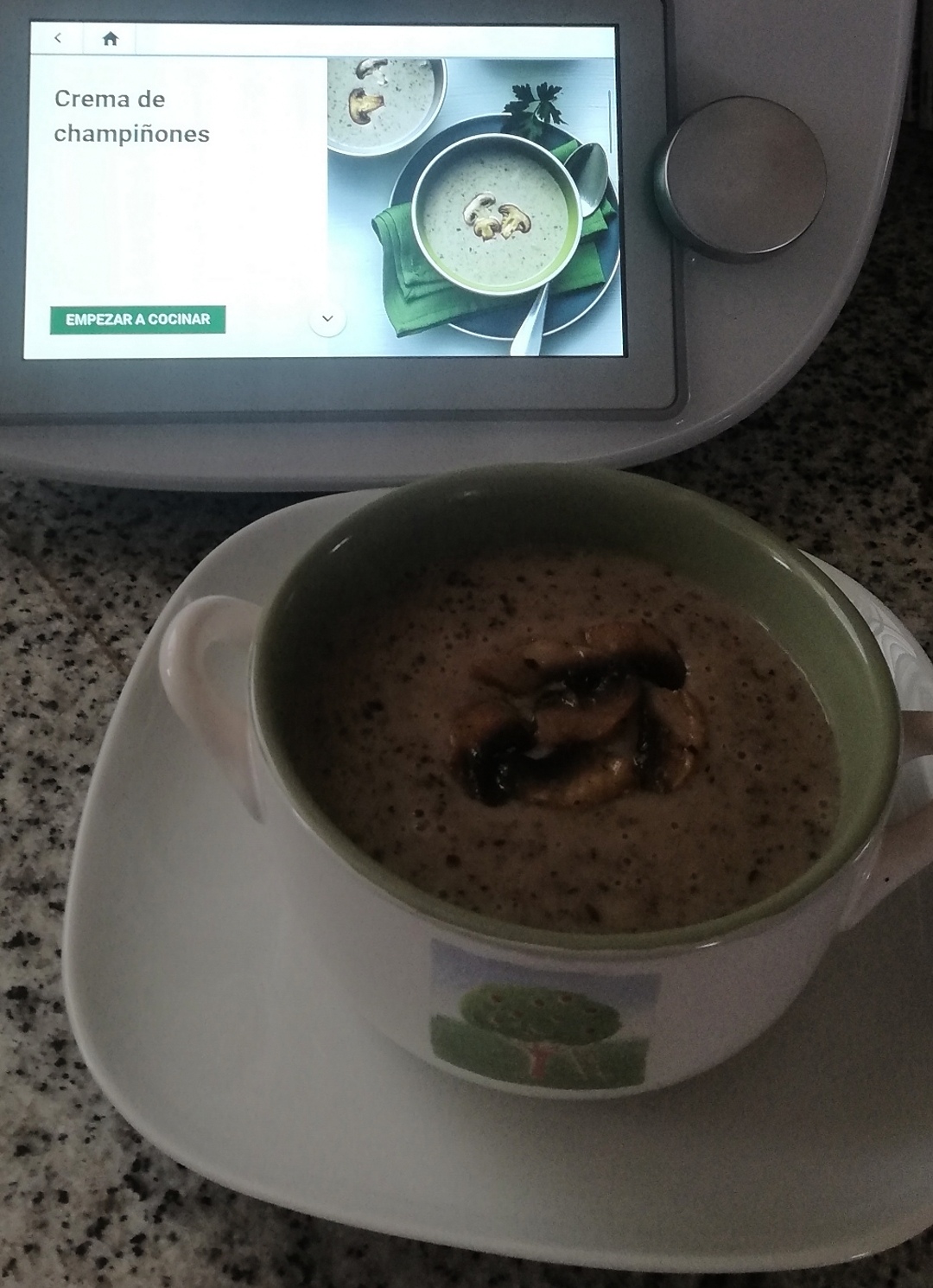 4. Trituramos 1 min/vel 4-7 progresivamente y servimos caliente.Podemos decorar con unas láminas de champiñones rehogadas.