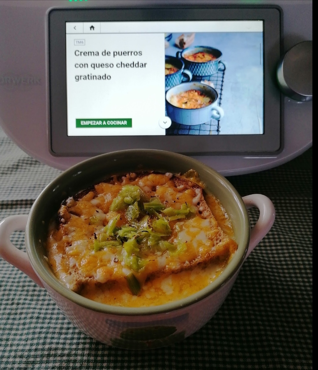 CREMA DE PUERROS Y QUESO CHEDAR GRATINADO