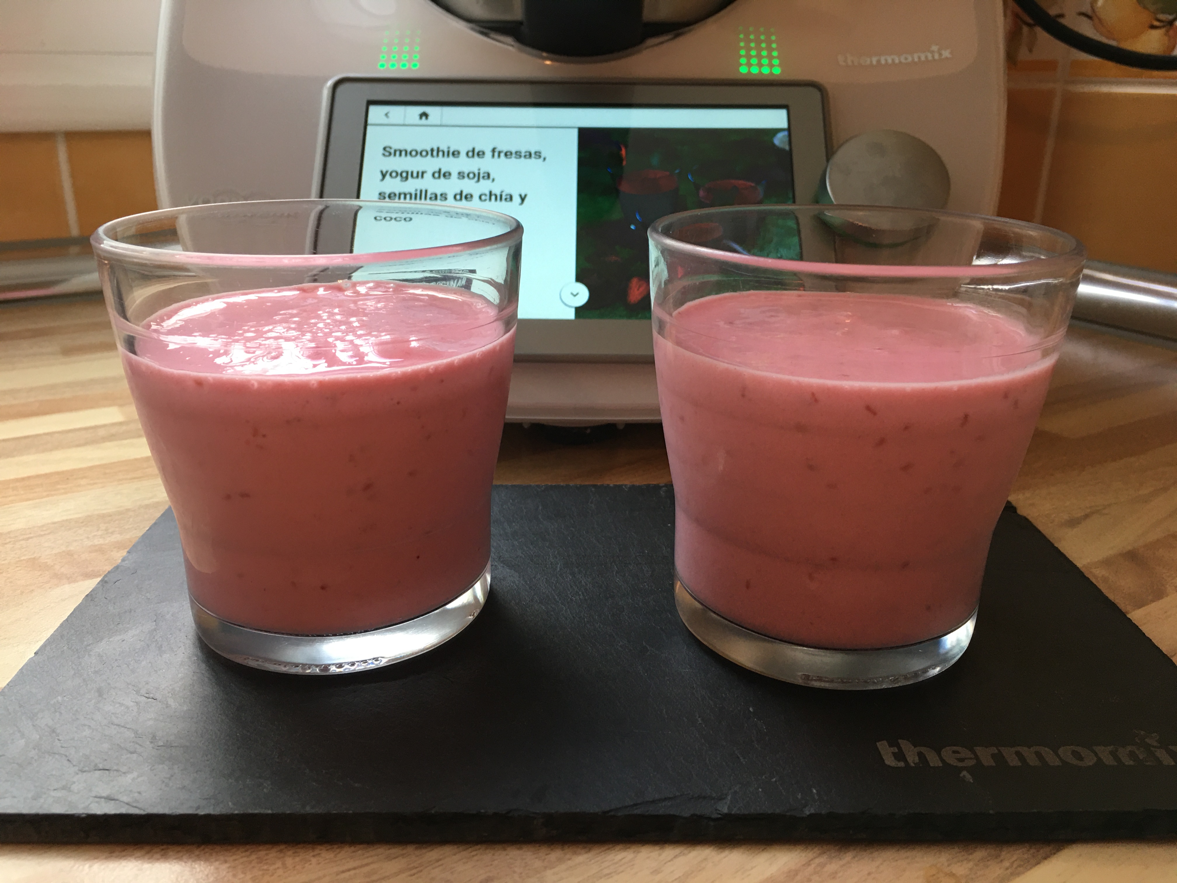 SMOOTHIE DE FRESAS, YOGUR DE SOJA, SEMILLAS DE CHIA Y COCO