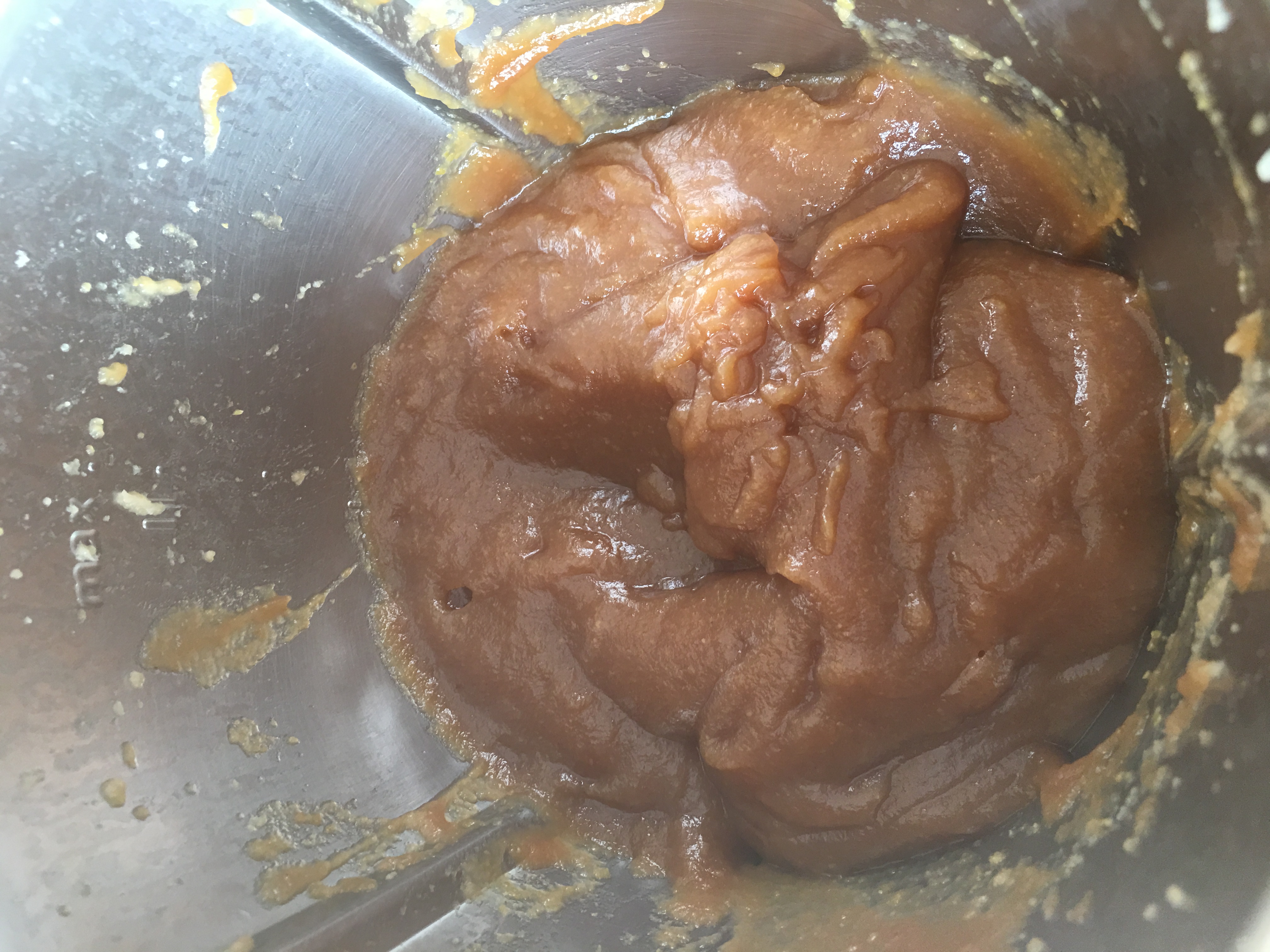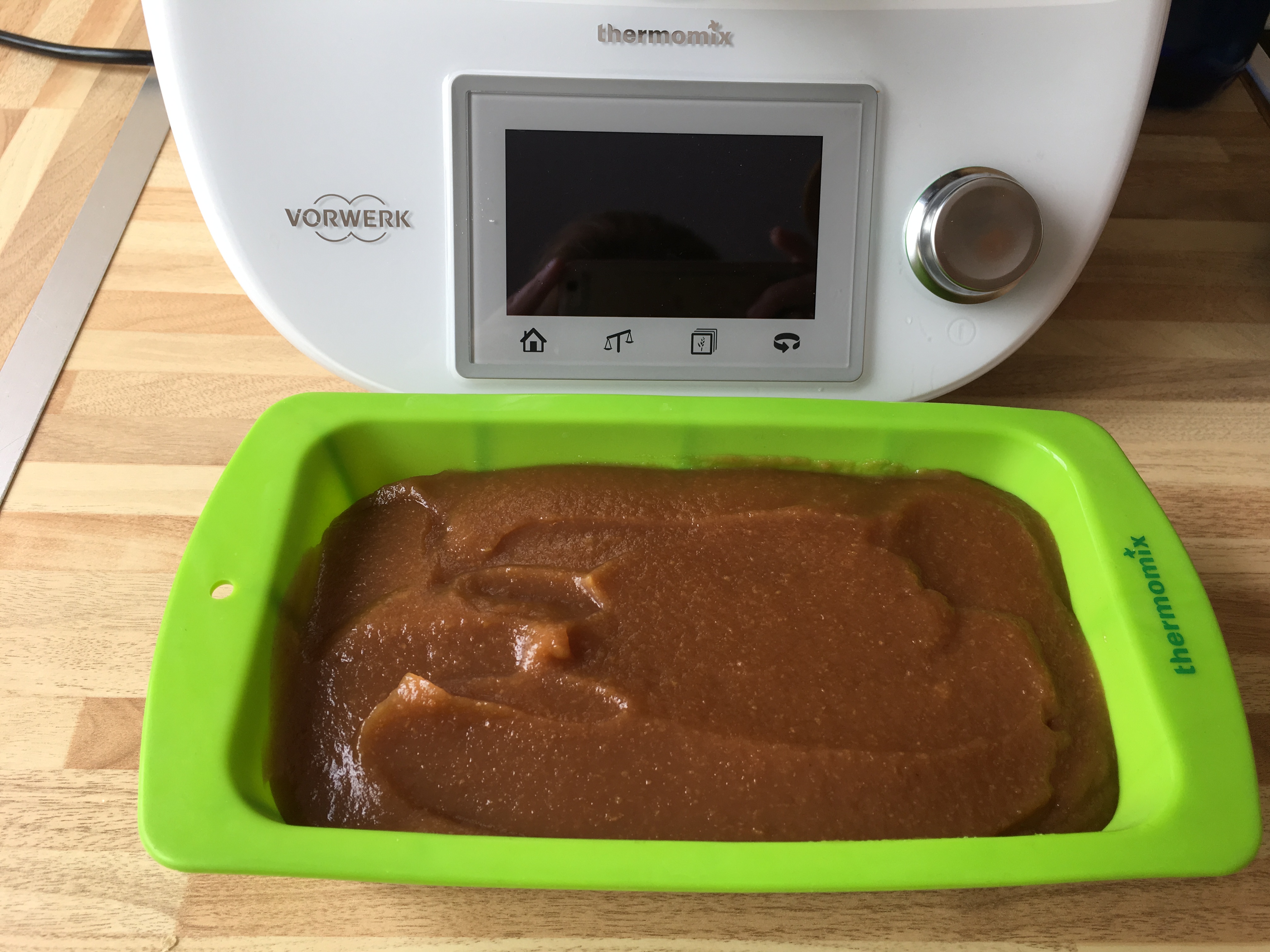 Añada el membrillo triturado reservado. Coloque el cestillo sobre la tapa en lugar del cubilete y programe 30 min/100°C/vel 5. Con la espátula, baje el membrillo hacia el fondo del vaso. Coloque el cestillo sobre la tapa en lugar del cubilete y programe 15 min/100°C/vel 5.