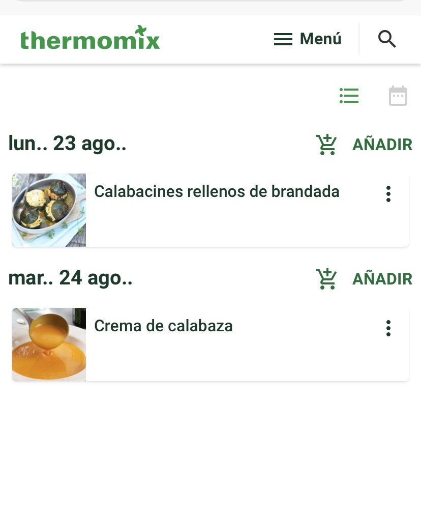 3. Puedes hacer tu menú semanal, añadiendo recetas al día que desees y así podrás organizar un menú mas variado para tu semana.