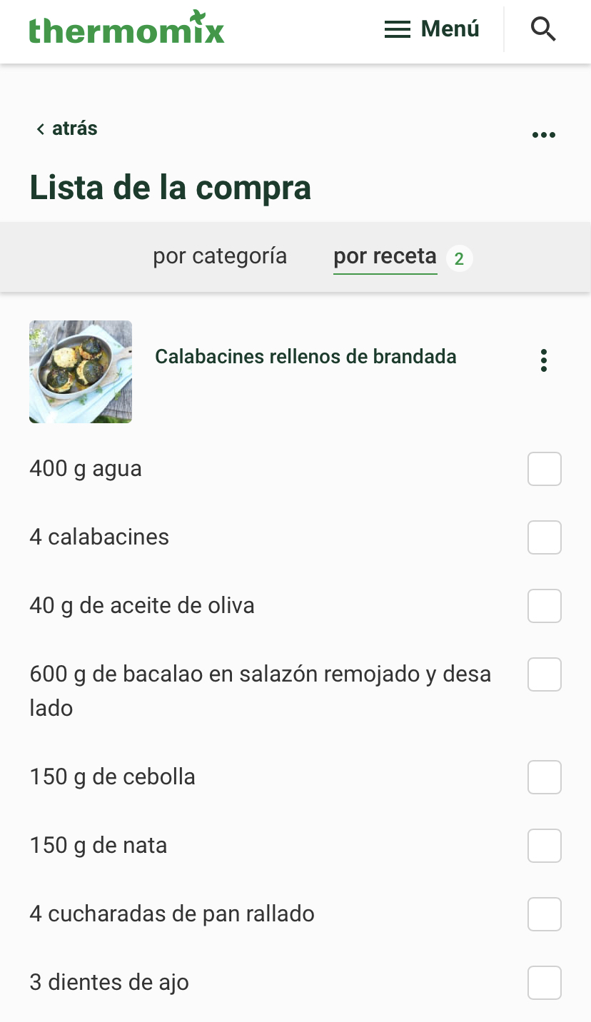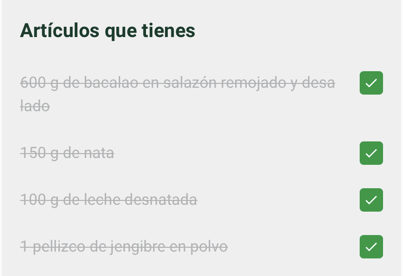 En cualquiera de las dos posibilidades, tenemos unos cuadrados a mano derecha, es para que puedas ir pulsando y borrando los ingredientes que ya tienes en casa.