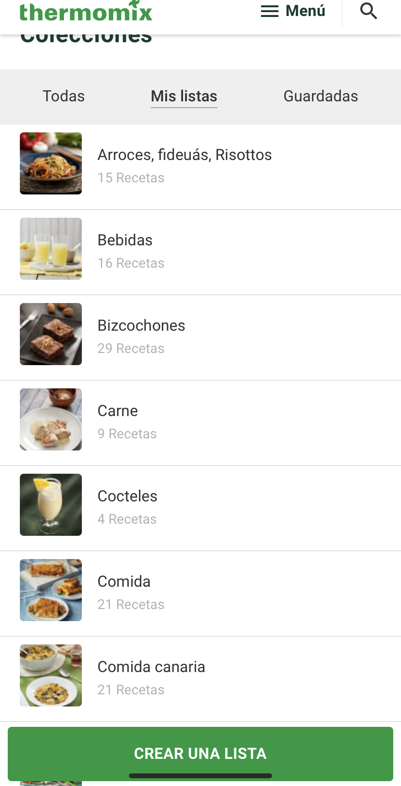 Eliges la receta, pulsas sobre ella, te sale un desplegable que pone añadir, pulsas sobre añadir a coleccion y se abre una pantallita, pulsas sobre el símbolo + o añadir a lista (según dispositivo) y creas tantas listas como desees y vas seleccionando tus recetas preferidas por categorías.