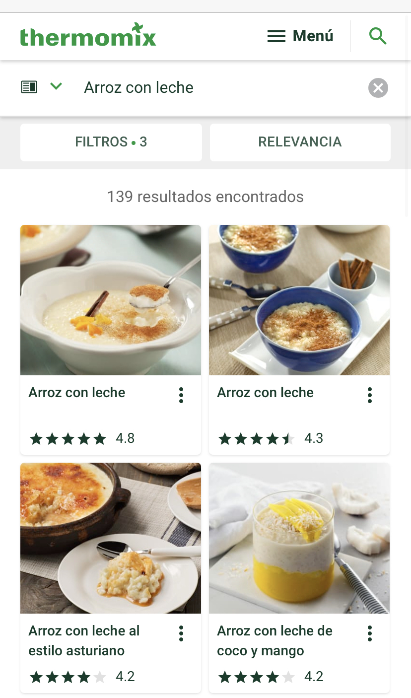 •nombre específico, por ejemplo arroz con leche y te salen todas las recetas que tenemos y así puedes elegir la que más se ajuste a tus gustos.