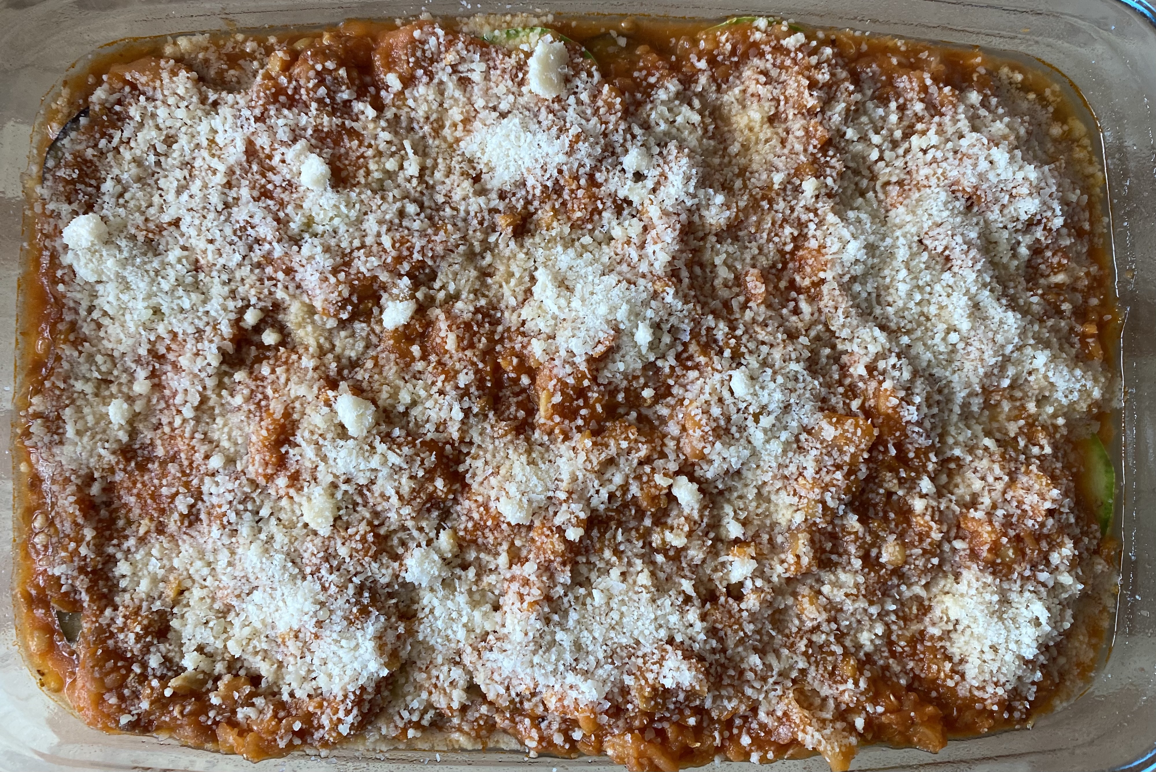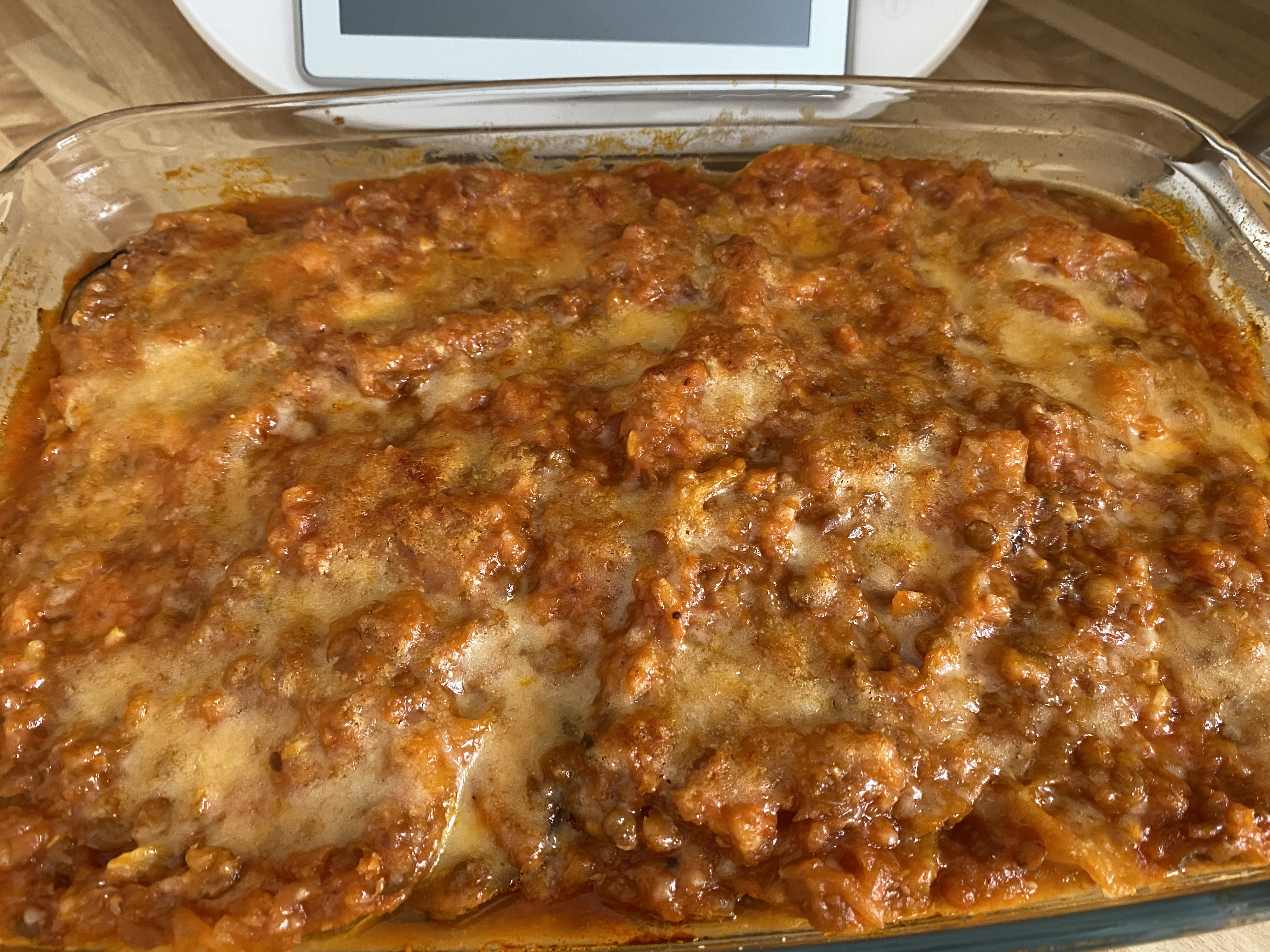 Graten de berenjena, calabacín y lentejas con Thermomix